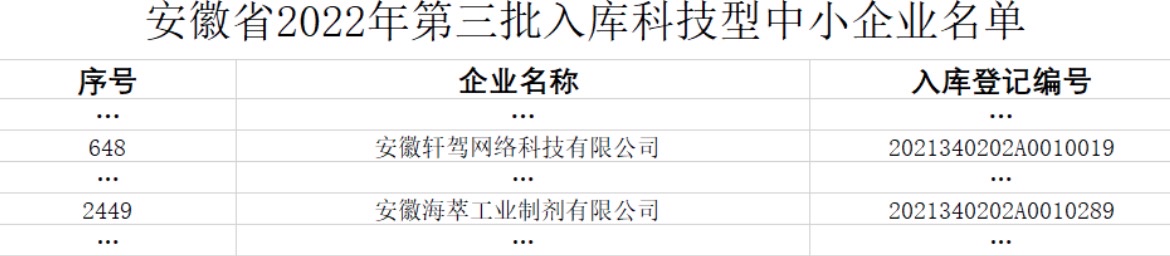 5月26日,安徽省科技廳公示了2022年第三批擬入庫(kù)科技型中小企業(yè)名單,園區(qū)安徽海萃工業(yè)制劑有限公司和安徽軒架網(wǎng)絡(luò)科技有限公司兩戶企業(yè)成功入庫(kù)。